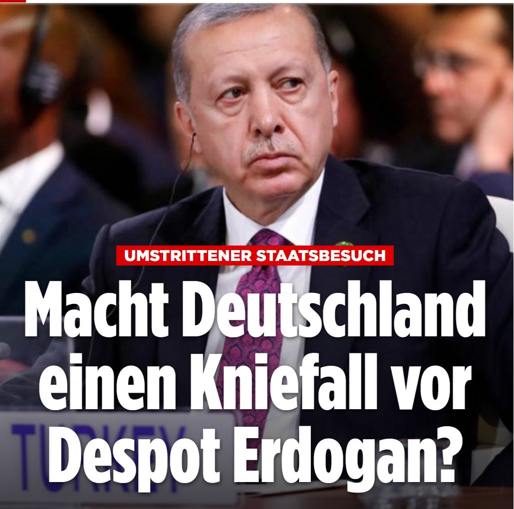 Thorsten Benner on Twitter: "Erdogan to visit Germany in late September. And @BILD is already in full campaign mode: "Will Germany go on its knees in front of despot Erdogan?". That its